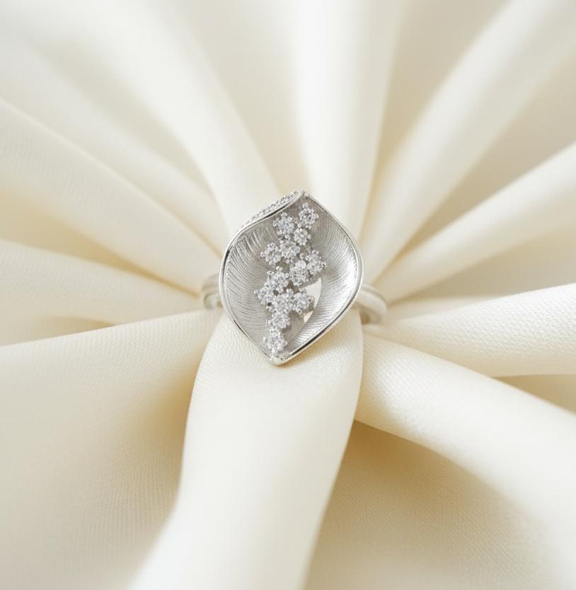 ♥ Celestia Leaf Diamond Ring in Sterling Silver 925 ♥ Sterling Silver Engagement Ring ♥ Cocktail Ring ♥