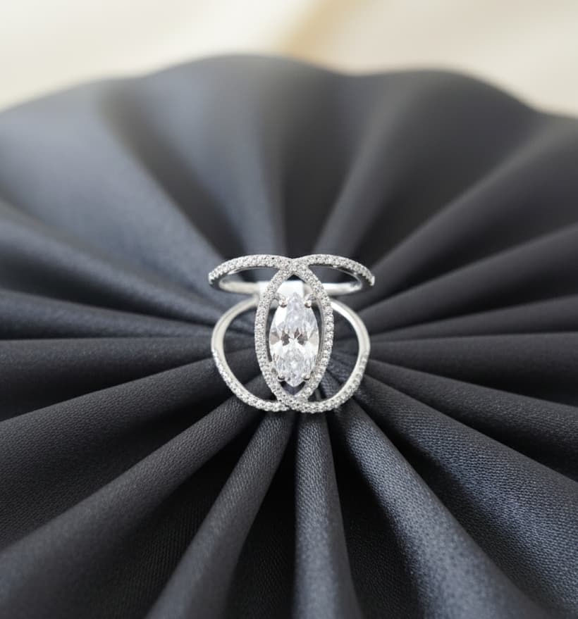 ♥ Celestial Marquise Orbit Ring in Sterling Silver 925 ♥ Sterling Silver Engagement Ring ♥ Cocktail Ring ♥