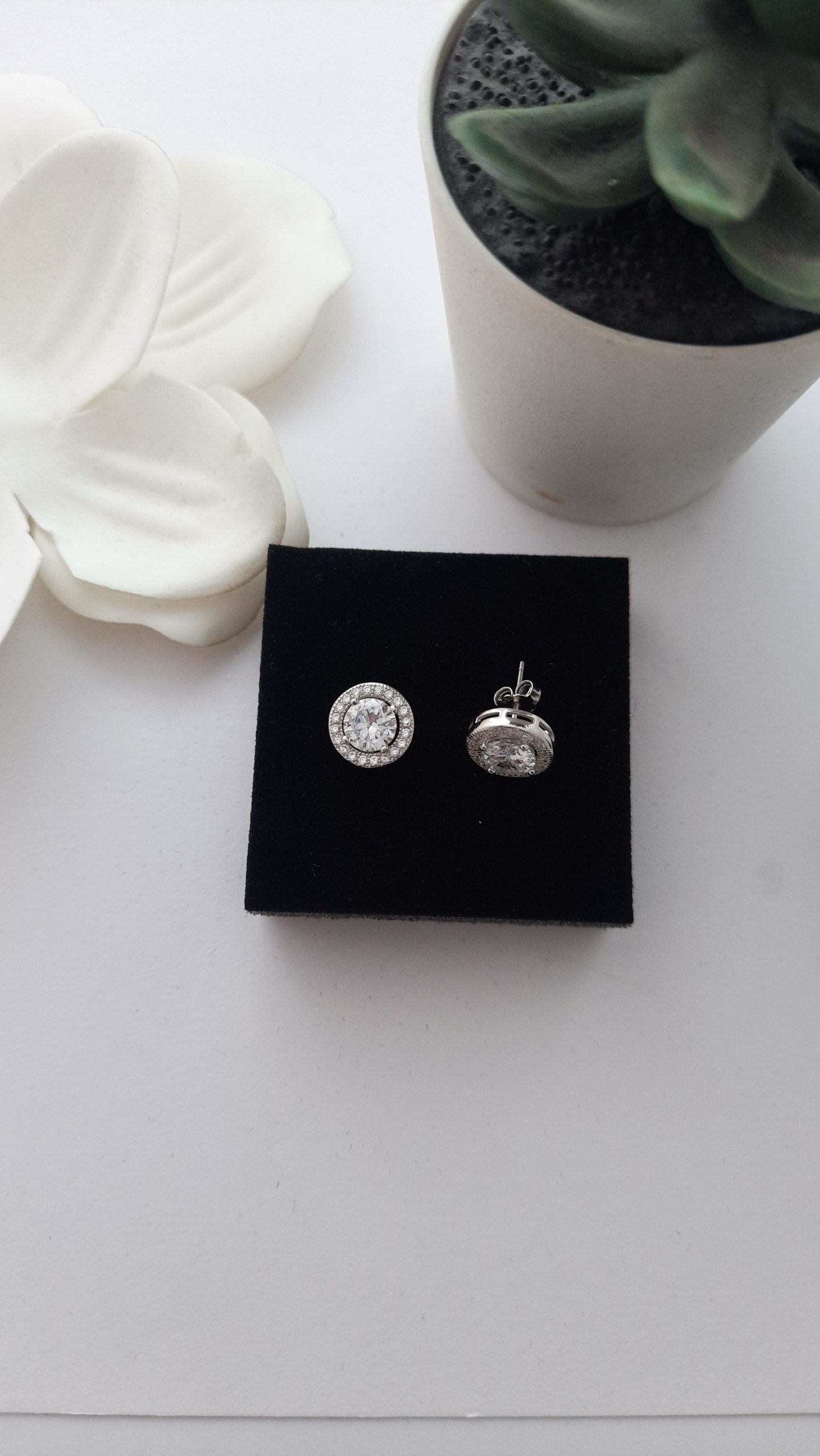 ♥ Circle CZ Diamond Stud Earrings in Sterling Silver ♥