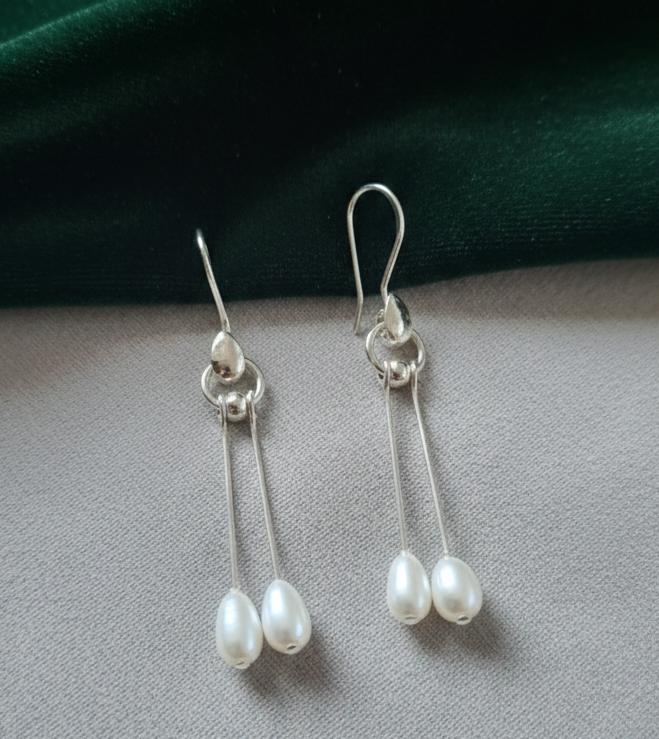 ♥ Double & Triple Teardrop Pearl Cluster Drop Earrings for women in sterling silver 925 ♥ Amazing Gift for her ♥