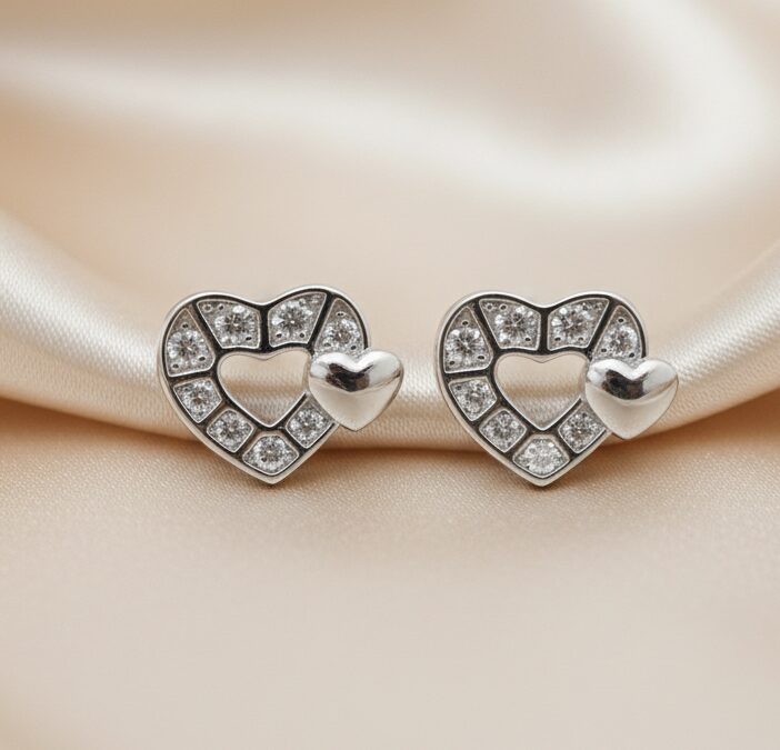 ♥ Dual Heart Sparkle Stud Earrings for women in sterling silver 925 ♥ Amazing Gift for her ♥