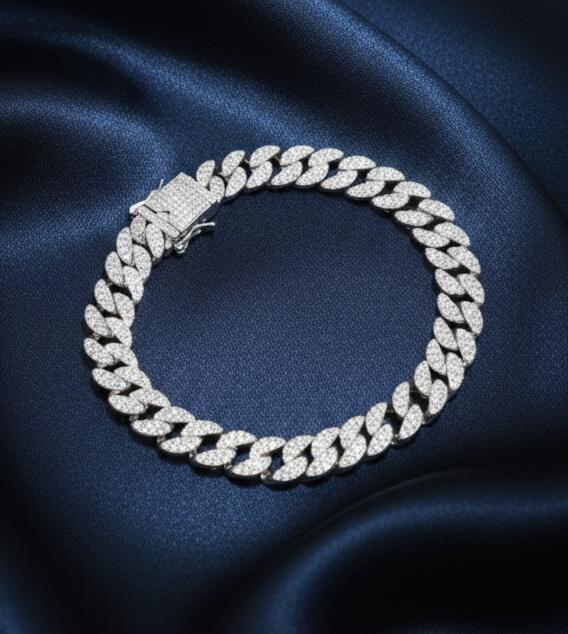 ♥ Imperial Diamond Cuban Bracelet in Sterling Silver 925 ♥ Mens Collection ♥