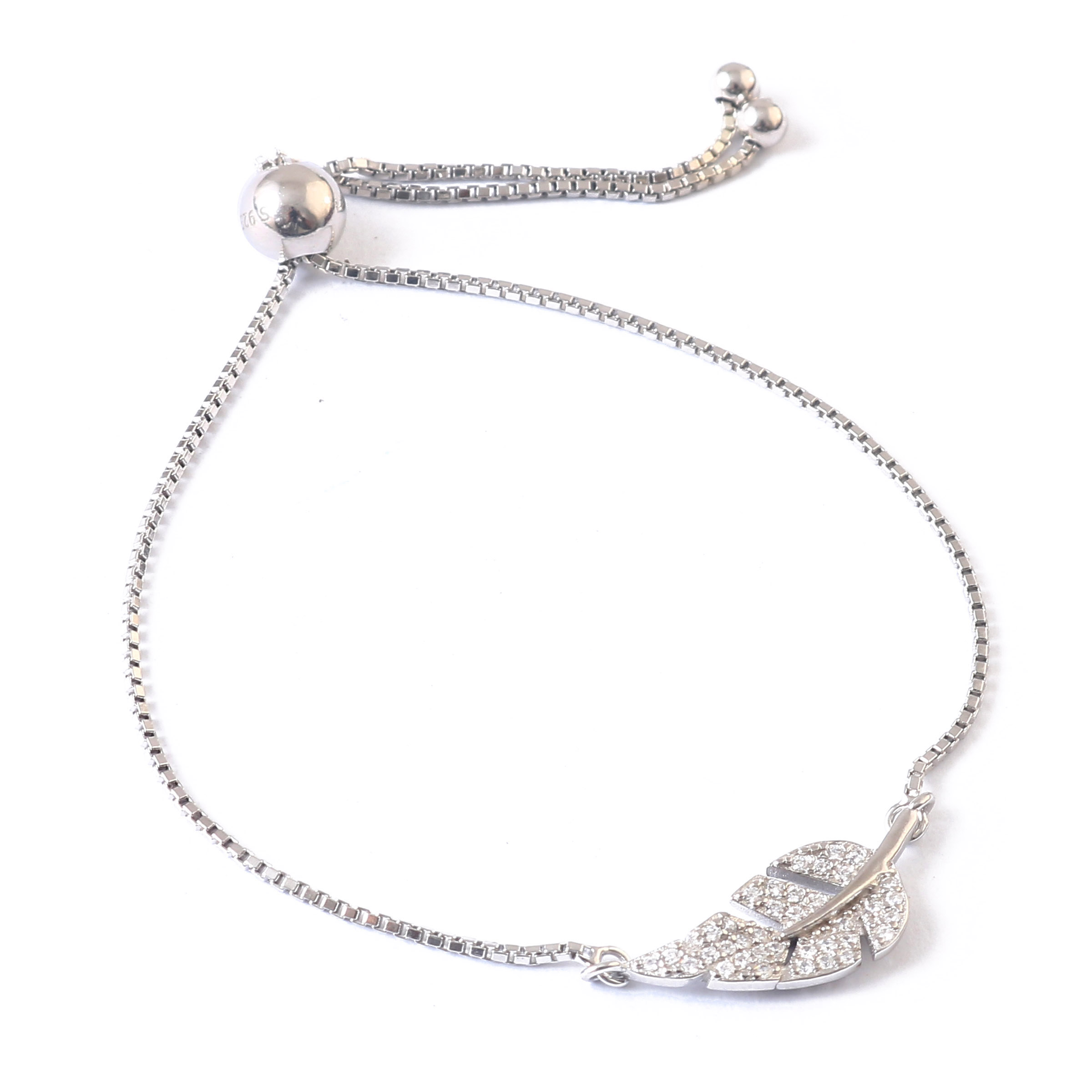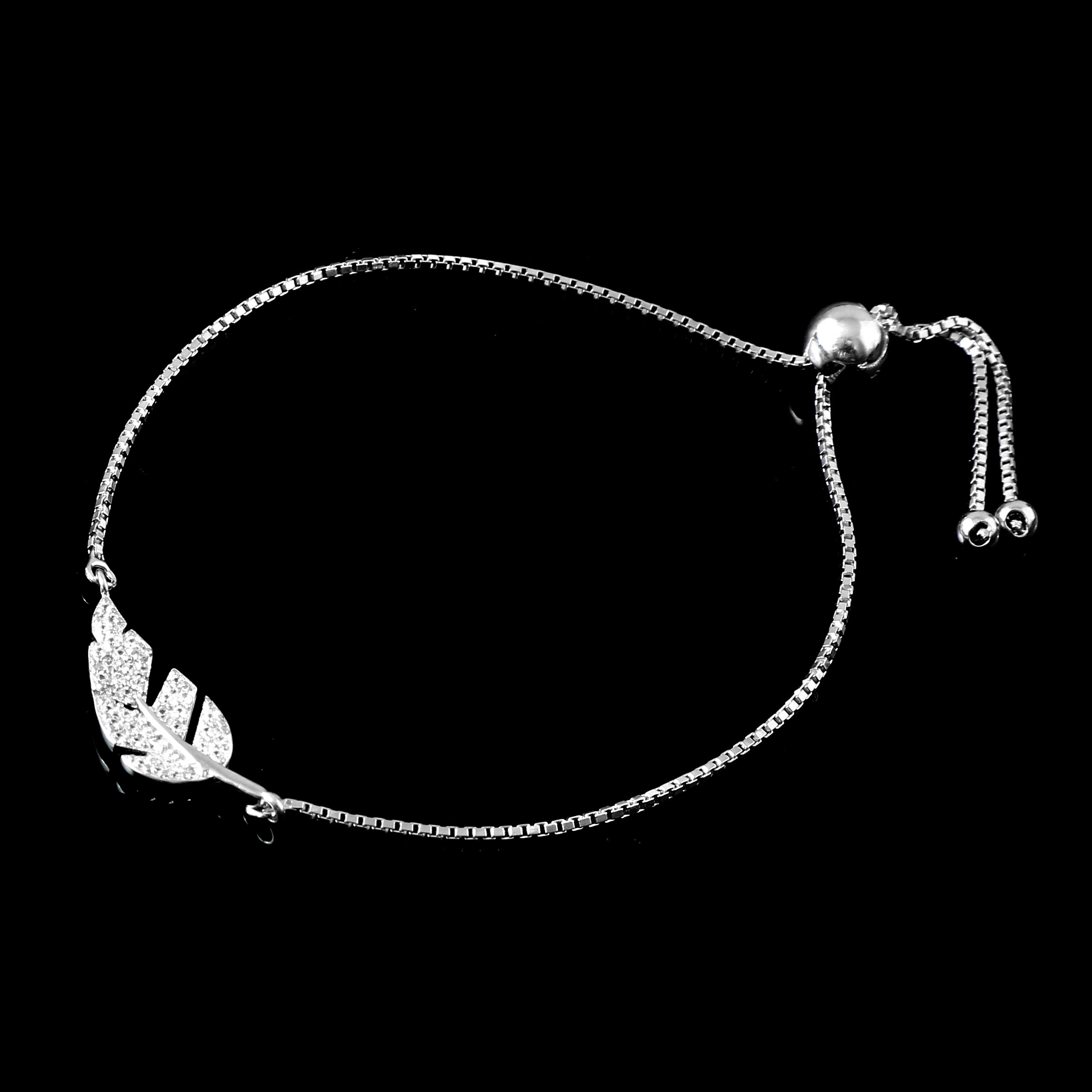 ♥ Leaf Charm CZ chain Bracelet in Sterling Silver 925 ♥ Perfect Gift For Women ♥