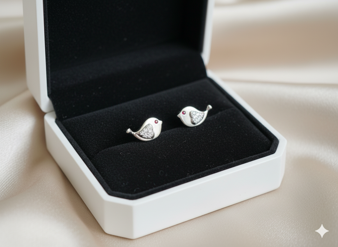 ♥ Love birds Enamel Charm Baby Earrings ♥ Beautiful Gift for Her ♥ Superlight weight Stud Earrings♥