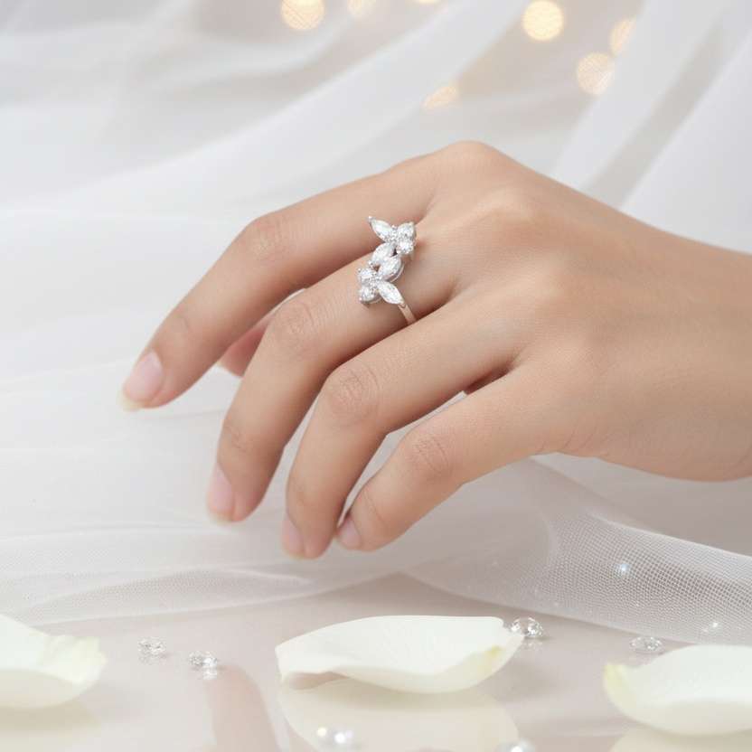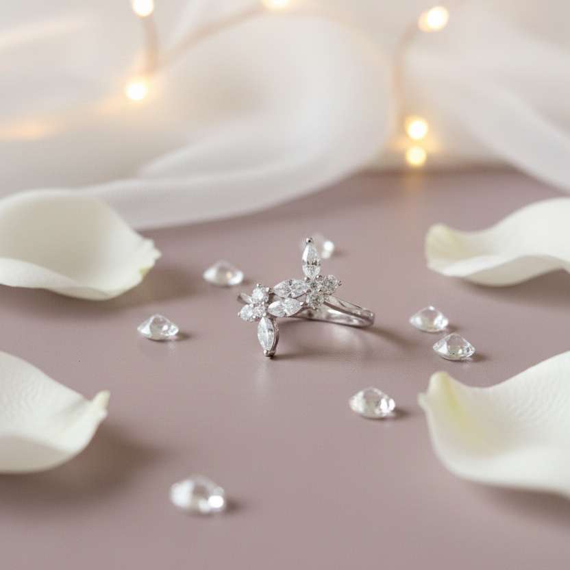 ♥ Marquise Floral Diamond Ring in Sterling Silver 925 ♥