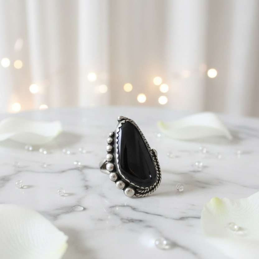♥ Midnight Black Onyx Ring in Sterling Silver 925 ♥