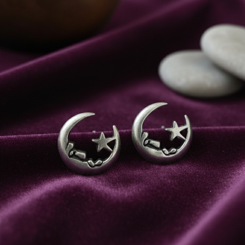 ♥ Moon n Star Studs ♥ Nature Inspired Jewelry ♥ Petite Earrings for Everyday ♥ Perfect Gift for Daughter/ Niece ♥