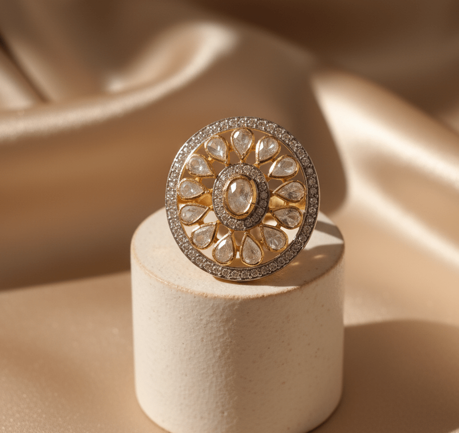 Large, gorgeous Silver Polki ring with moissanite setting