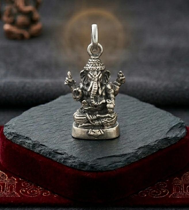 ♥ Oxidized Sterling Silver Lord Ganesha Seated Pendant with Four-Armed Iconography ♥ Gorgeous and Delicate Pendant ♥ Silver Jewelry 925 ♥
