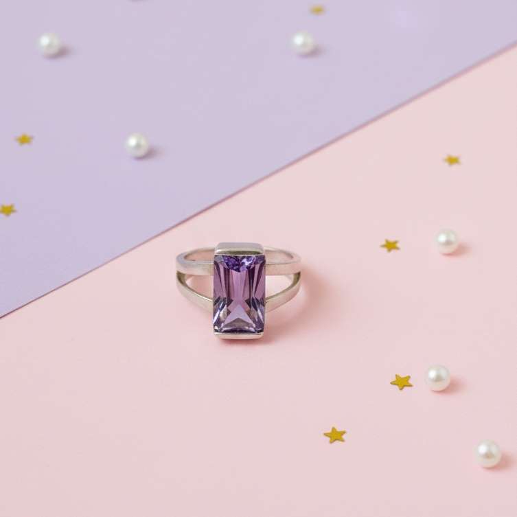 ♥ 925 Sterling Silver Purple Crystal Ring ♥