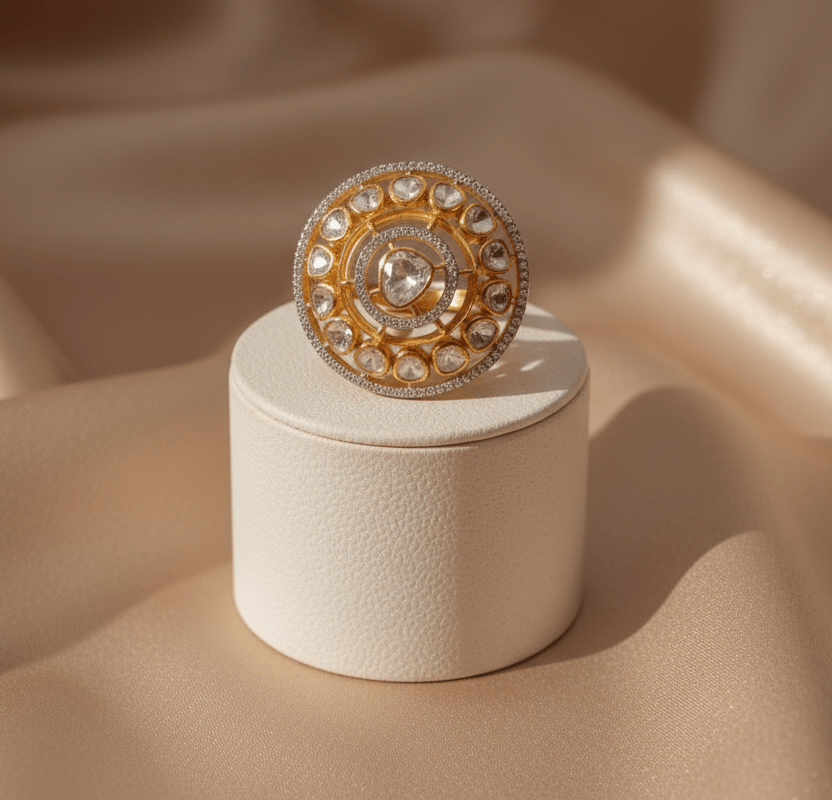 Large, gorgeous Silver Polki ring with Moissanite setting