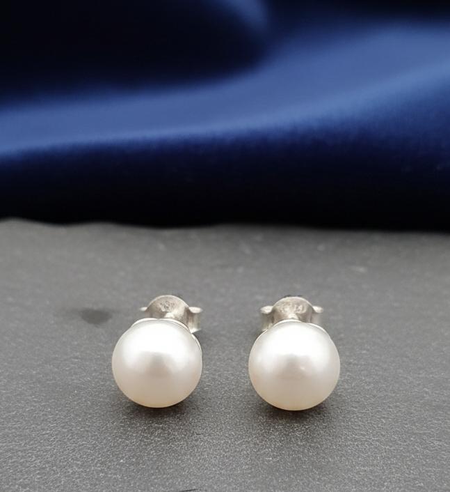 ♥ Round White Shell Pearl Stud Earrings for women in sterling silver 925 ♥ Amazing Gift for her ♥