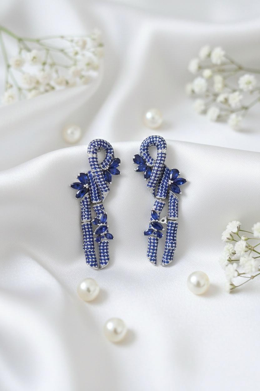 ♥ Royal Sapphire Pavé Ribbon Statement Earrings for women in sterling silver 925 ♥ Amazing Gift for her ♥