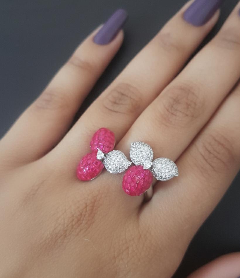 ♥ Ruby Bloom Diamond Cluster Ring ♥ Sterling Silver Engagement Ring ♥ Cocktail Ring ♥