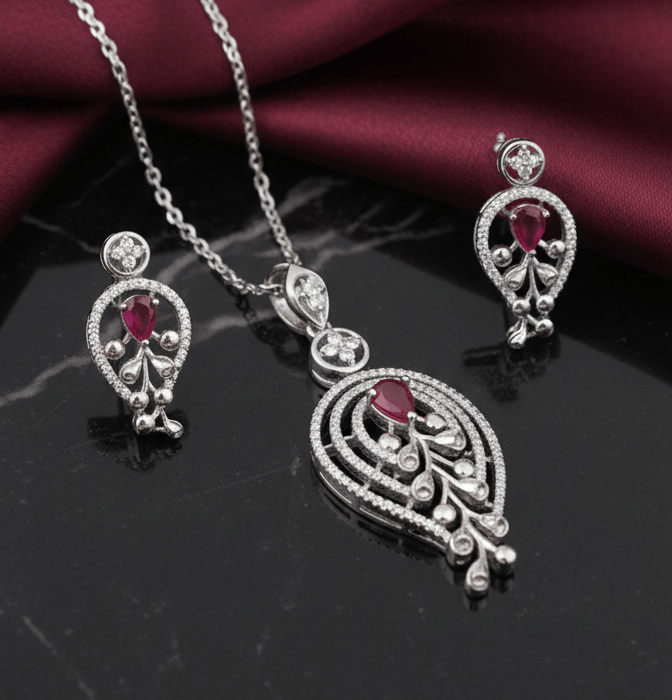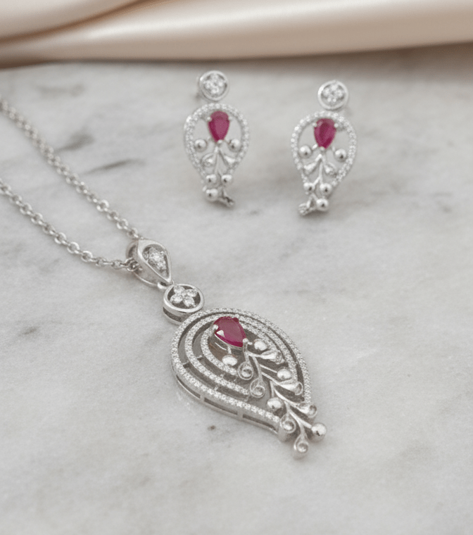 ♥ Ruby Dewdrop Pendant Set in Sterling Silver ♥ Gorgeous and Delicate Pendant Set ♥ Silver Jewelry 925 ♥