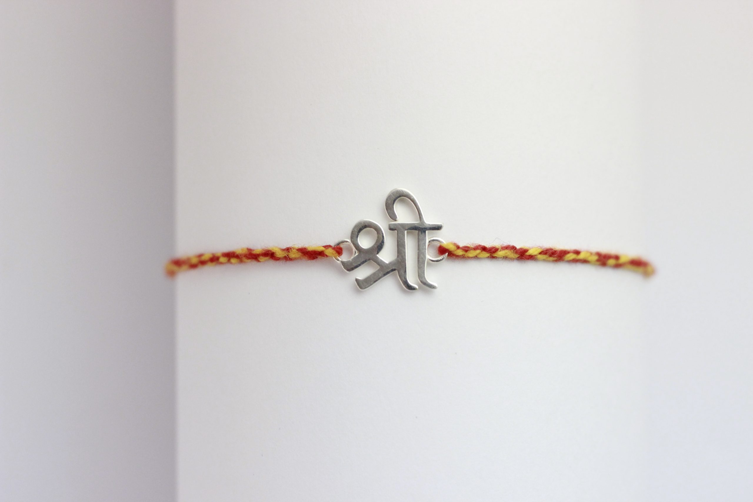 Shree (big) Silver Pendant Rakhi for Brother, Rakshabandhan, Traditional Moli Rakhi