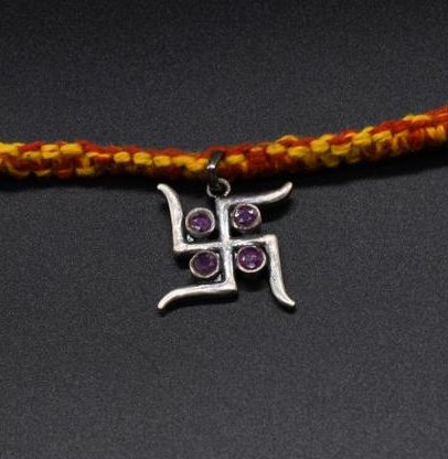 Silver Sathiya Pendant Rakhi for Brother, Rakshabandhan, Traditional Moli Rakhi