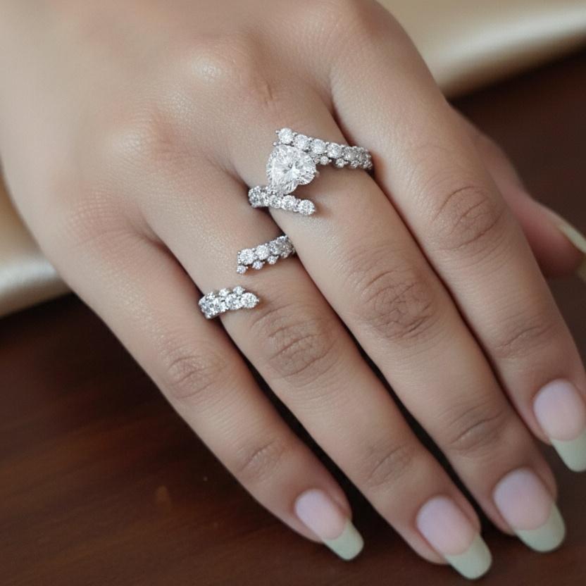Radiant Teardrop Crystal Pavé Wrap-Around Bridal Stack Ring for women in sterling silver 925