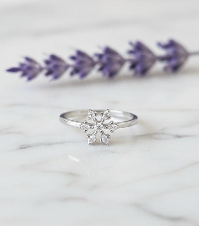 Sparkling Snowflake Solitaire Ring in Sterling Silver 925