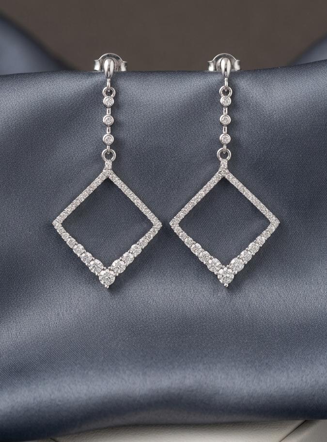 ♥ Square Crystal Frame Drop Earrings for women in sterling silver 925 ♥ Amazing Gift for her ♥