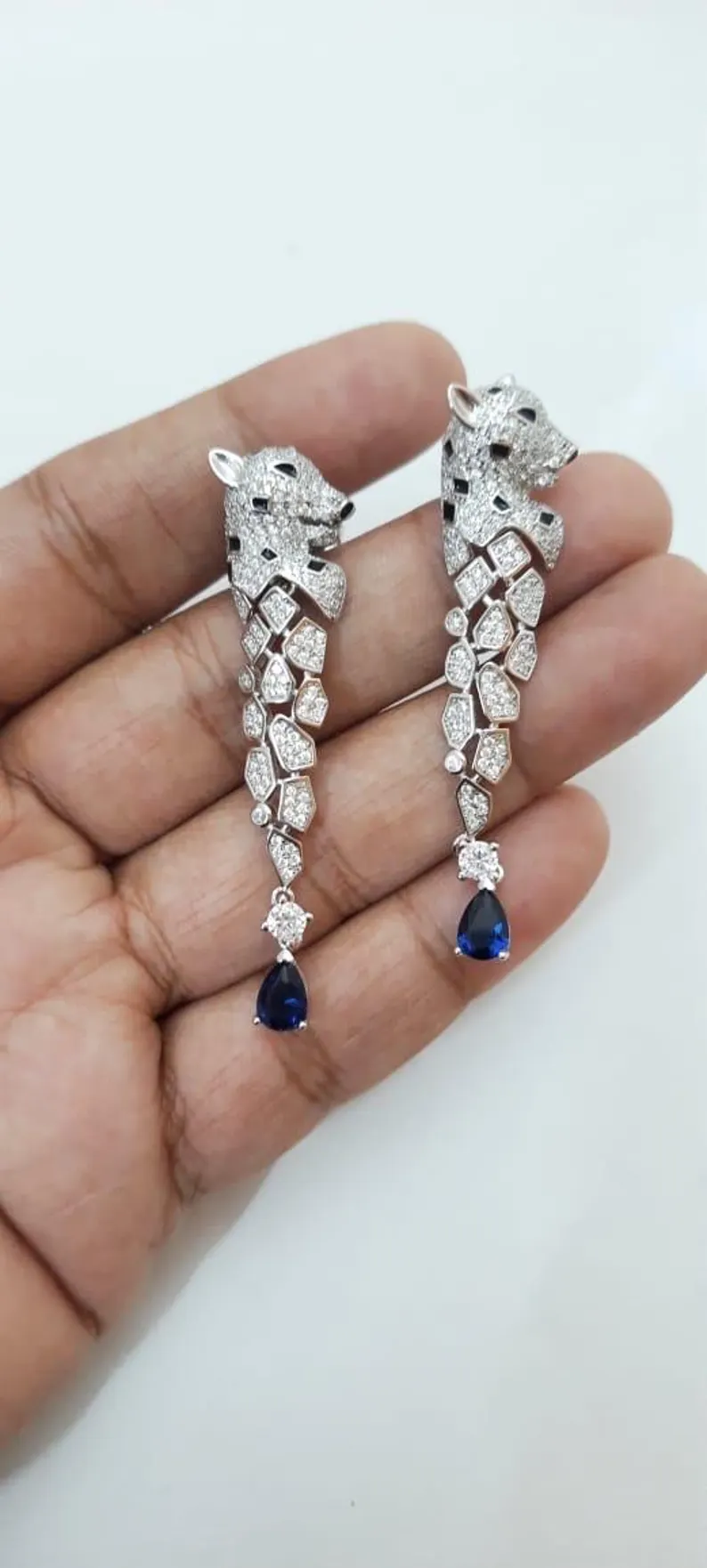 ♥ Sterling Silver Jaguar Earrings, Statement Earrings, Long Party Earrings ♥