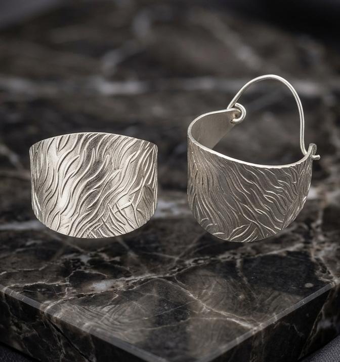 ♥ Sterling Silver Textured Wave Wide Hoop Earrings for women in sterling silver 925 ♥ Amazing Gift for her ♥