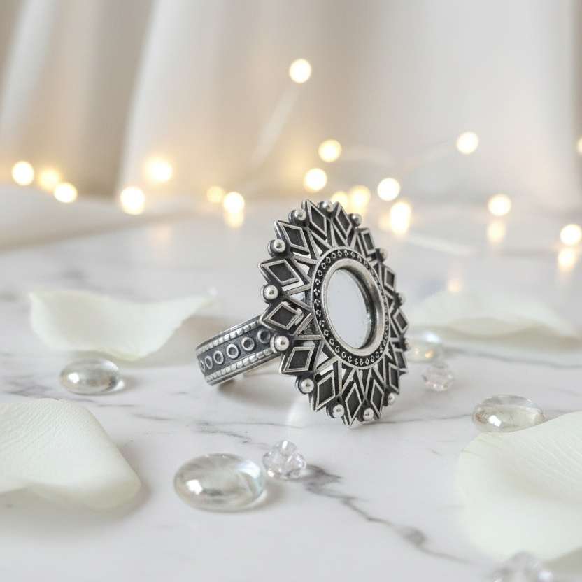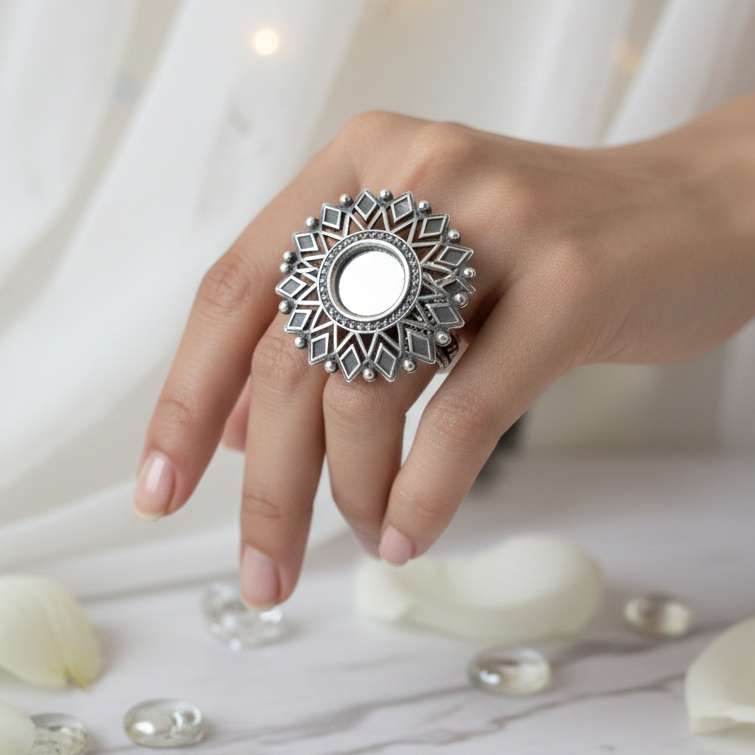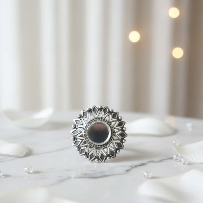 ♥ Sunbrust Mirror Ring in Sterling Silver 925 ♥