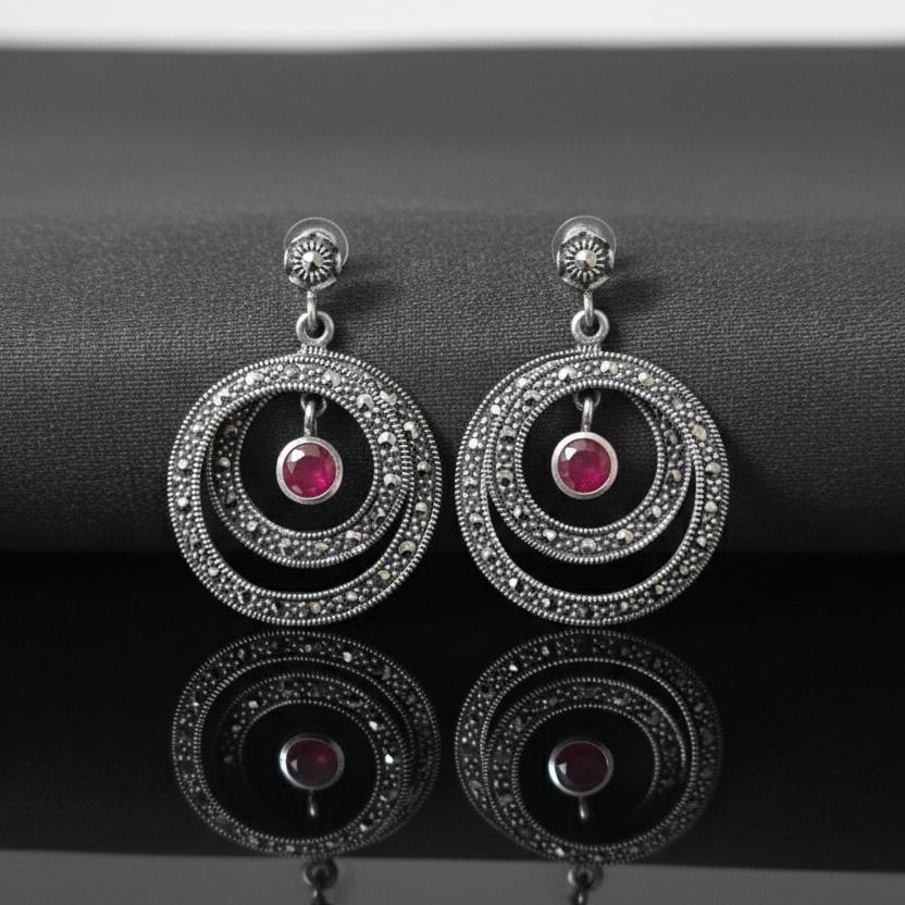 ♥ Swiss Marcasite Twist Loops Earrings for women in sterling silver 925 ♥ Amazing Gift for her ♥