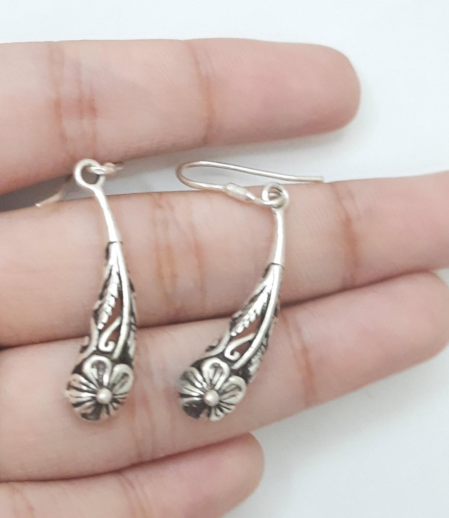 ♥ Traditional Oxidized Flower Dangles Earrings for women in sterling silver 925 ♥ Amazing Gift for her ♥