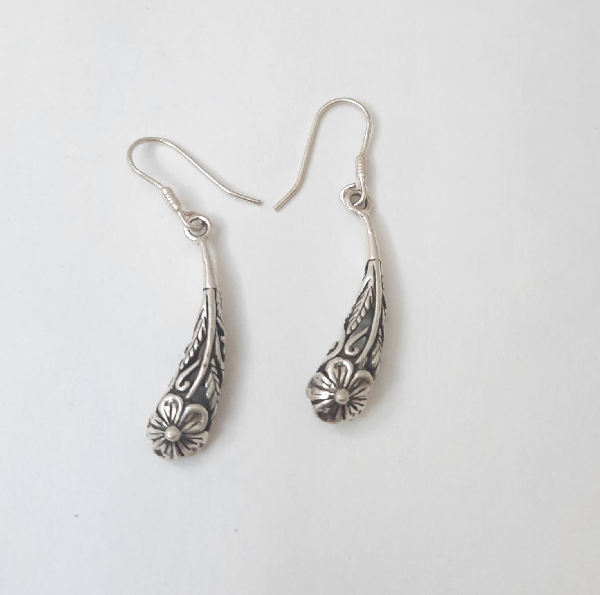 Traditional Oxidized Flower Dangles Earrings for women in sterling silver 925