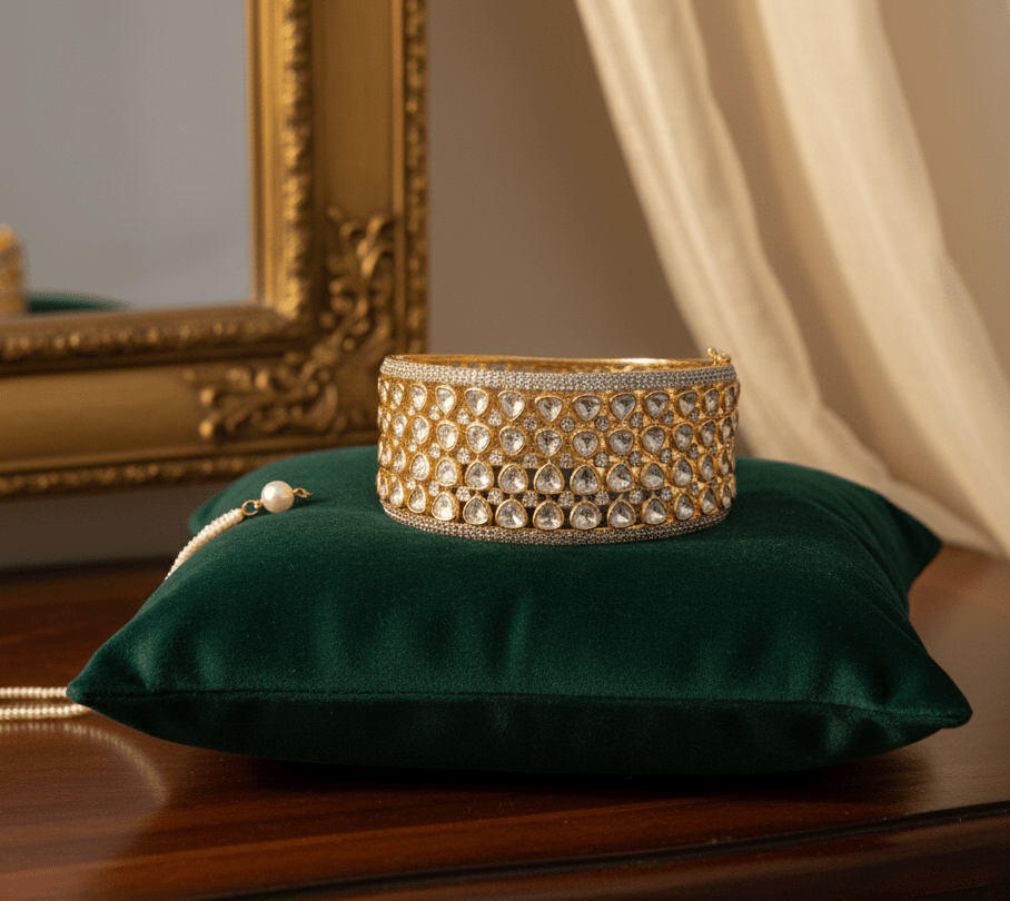 ♥ Traditional Silver Polki Rajwada Kada for women in sterling silver 925 ♥