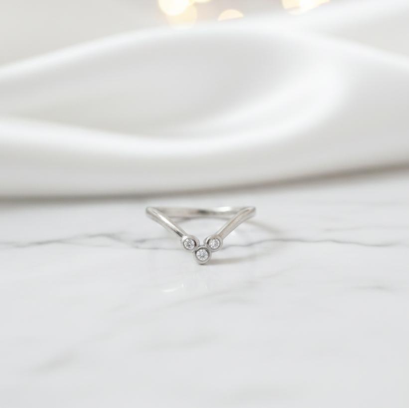 ♥ Trio-Stone Bezel Set Curved Ring in Sterling Silver 925 ♥ Sterling Silver Ring ♥ Cocktail Ring ♥