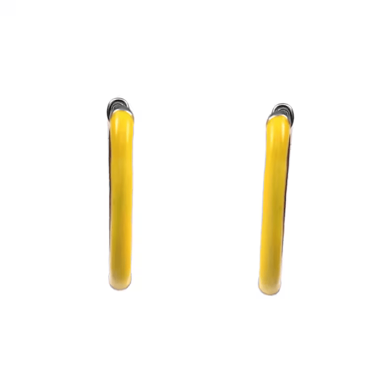 Simple yet special—that’s what we were going for with these huggies. Done in yellow enamel, they have a tubular silhouette. Big enough to make an impression but small enough to be worn all day, everyday.
